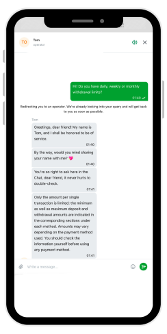 Ich habe meistens über den Live-Chat um Hilfe gebeten. Er ist rund um die Uhr in Betrieb, und die Agenten reagieren schnell. Während der Vorbereitung dieser 22Casino-Bewertung hatte ich ein paar Fragen, bei denen die Antworten unvollständig waren und das Problem nicht vollständig lösten - zum Beispiel die Situation mit den Einzahlungslimits, die ich im Abschnitt AGB beschrieben habe. Insgesamt bin ich jedoch mit der Leistung des Live-Chats zufrieden.