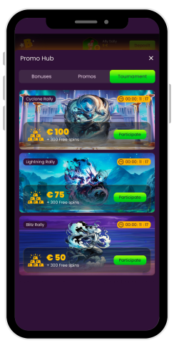 Eine Vielzahl von Boni und Aktivitäten: Glücksrad, Missionen, Turniere und ein 30-stufiges VIP-Programm mit klaren Aufstiegsregeln.