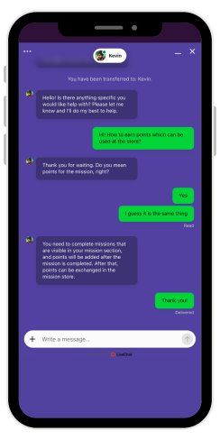 Für schnellere Hilfe ist es besser, den Live-Chat zu nutzen. Während der Vorbereitung dieser Bizzo-Bewertung habe ich ihn häufiger benutzt. Sie finden den Chat-Link, indem Sie das Hauptmenü öffnen und Kontakte auswählen. Um eine Verbindung herzustellen, müssen Sie Ihren Namen und Ihre E-Mail-Adresse eingeben. Ein virtueller Assistent erscheint zuerst und bietet automatische Antworten zu Themen wie: Einzahlungsboni, andere Bizzo Casino-Aktionen, VIP-Programm, Einzahlung/Auszahlung, KYC, AGB, Probleme mit Casino-Wetten, Mein Konto, etc. Um einen echten Agenten zu erreichen, müssen Sie nur diese Anfrage in den Chat eingeben. Der Agent verbindet sich sofort mit Ihnen und hilft Ihnen sehr schnell.