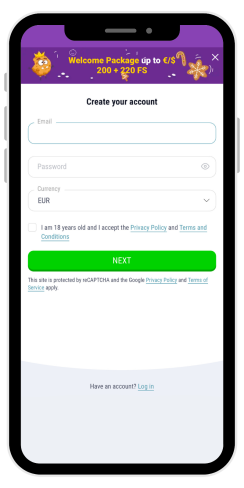 Sie müssen die wichtigsten CookieCasino-Anmeldedaten angeben: E-Mail, Passwort, und wählen Sie Ihre Währung. In dieser Phase müssen Sie auch bestätigen, dass Sie das Mindestalter erreicht haben, und die Datenschutzrichtlinie und die Allgemeinen Geschäftsbedingungen akzeptieren. Beide Dokumente sind über aktive Links verfügbar, so dass Sie sie lesen können, bevor Sie mit der Anmeldung fortfahren.