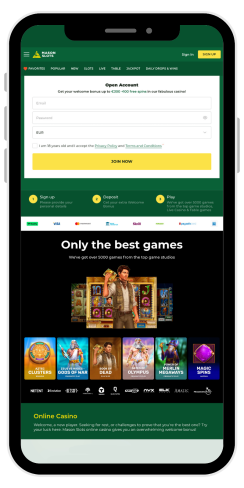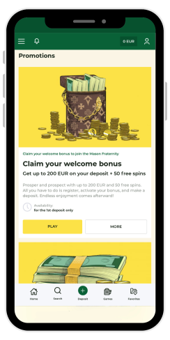 Nachdem ich mir das Mason Slots Online-Casino genauer angesehen habe, kann ich sagen, dass es sich um eine gut aufgebaute, ausgereifte Website handelt, die sich eher auf Stabilität, Transparenz und Spielerkomfort konzentriert als auf auffällige Gimmicks. Das Design hat ein unverwechselbares freimaurerisches Thema, aber die Seite ist sauber, schnell und einfach zu navigieren, sowohl auf dem Desktop als auch auf dem Handy. Mir ist besonders aufgefallen, wie übersichtlich die Lobby ist - trotz der großen Anzahl von Anbietern wirkt sie nie überwältigend. Die mobile Version läuft ebenfalls reibungslos und spiegelt fast alle Funktionen des Desktops wider, was das Spielen unterwegs sehr angenehm macht.