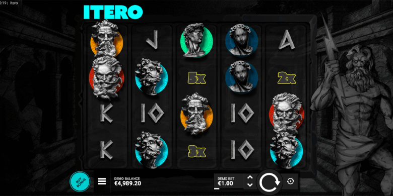 Der RTP der Itero Slot Demo ist veränderbar. Aufgrund der Verfügbarkeit von Bonuskäufen kann er sich deutlich verändern. Und wenn der Standardwert 96,18% beträgt (was der Durchschnitt ist), kann er nach dem Kauf von Optionen niedriger werden. So könnte der niedrigste Satz 88,33 % betragen. Darüber hinaus ist die Varianz extrem hoch, was bei den Wetten ebenfalls berücksichtigt werden sollte. Die Trefferquote liegt bei 29 %. Positiv am Itero-Spielautomaten sind die vielfältigen Einsätze. Die Spieler können den Einsatz problemlos nach ihrem Budget wählen. Der Anbieter bietet Einsätze von 0,10 bis 100 EUR pro Runde an. Um eine Auszahlung zu erhalten, müssen 3-5 gleiche Elemente auf einer Gewinnlinie erscheinen. Die Auszahlungstabelle enthält sowohl Elemente mit hoher als auch mit niedriger Auszahlung. Die erste Gruppe wird durch die Statuen der römischen Götter repräsentiert: