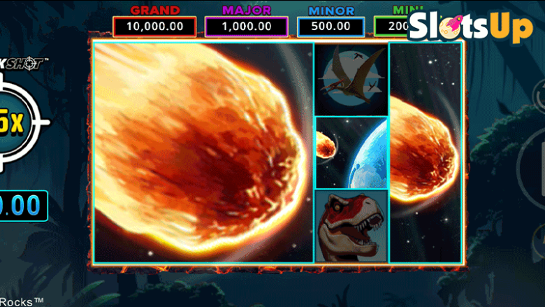 Crackshot. Wenn Sie mindestens ein Schuss-Symbol zusammen mit Meteoriten erhalten und die Anzeige über dem Gitter vervollständigen, schalten Sie das Crackshot-Feature frei. Neben denselben Big Blocks-Walzen haben Sie die Chance, einen zusätzlichen Preis zu gewinnen. Seine Größe wird durch die Crackshot-Tafel bestimmt. Mögliche Multiplikatoren sind 22x, 33x, 44x, 55x, 66x, 77x, 88x, 99x, 111x und 222x.