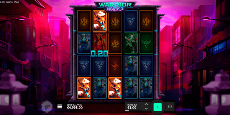 Der Warrior Ways Slot von Hacksaw Gaming ist ein spannendes Spiel, das asiatischen Kriegern gewidmet ist. Mit den einfachsten Waffen hat dieser Pokie einen eigentümlichen futuristischen Stil. Das Online Casino Spiel wurde am 29. März 2022 veröffentlicht. Spieler können ein 5×4-Spielraster und bis zu 1.024 Gewinnmöglichkeiten nutzen.